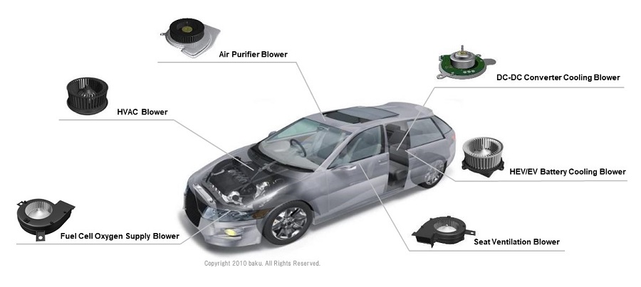 The blower motor is an optimal device for blowing and cooling, and is used in a variety of equipment around us. They range from the large blowers found in applications such as production machinery and clean rooms, to the small blowers built into devices such as home appliances or personal computers, and are used to move air for exhausting ventilation or cooling.